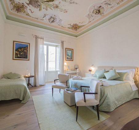 Ce B&B haut de gamme situé dans le centre de Palerme a conservé son caractère historique. Les chambres lumineuses et spacieuses sont décorées avec simplicité, dans des tons doux, avec des meubles blanchis à la chaux et quelques antiquités. L'hôtel propose un délicieux petit déjeuner et des visites guidées de Palerme. Une charmante résidence.