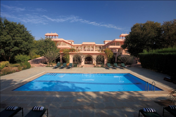 Prächtiges Nouveau-Palasthotel am Rande des Ranthambore-Nationalparks. Traditionelle Eleganz und königliche Opulenz in den Innenräumen. Marmorböden, Kronleuchter, Gewölbedecken, Mosaikwände und Fresken an den Decken. Romantische Zimmer und Suiten mit Himmelbetten. Fantastisches indisches Essen.