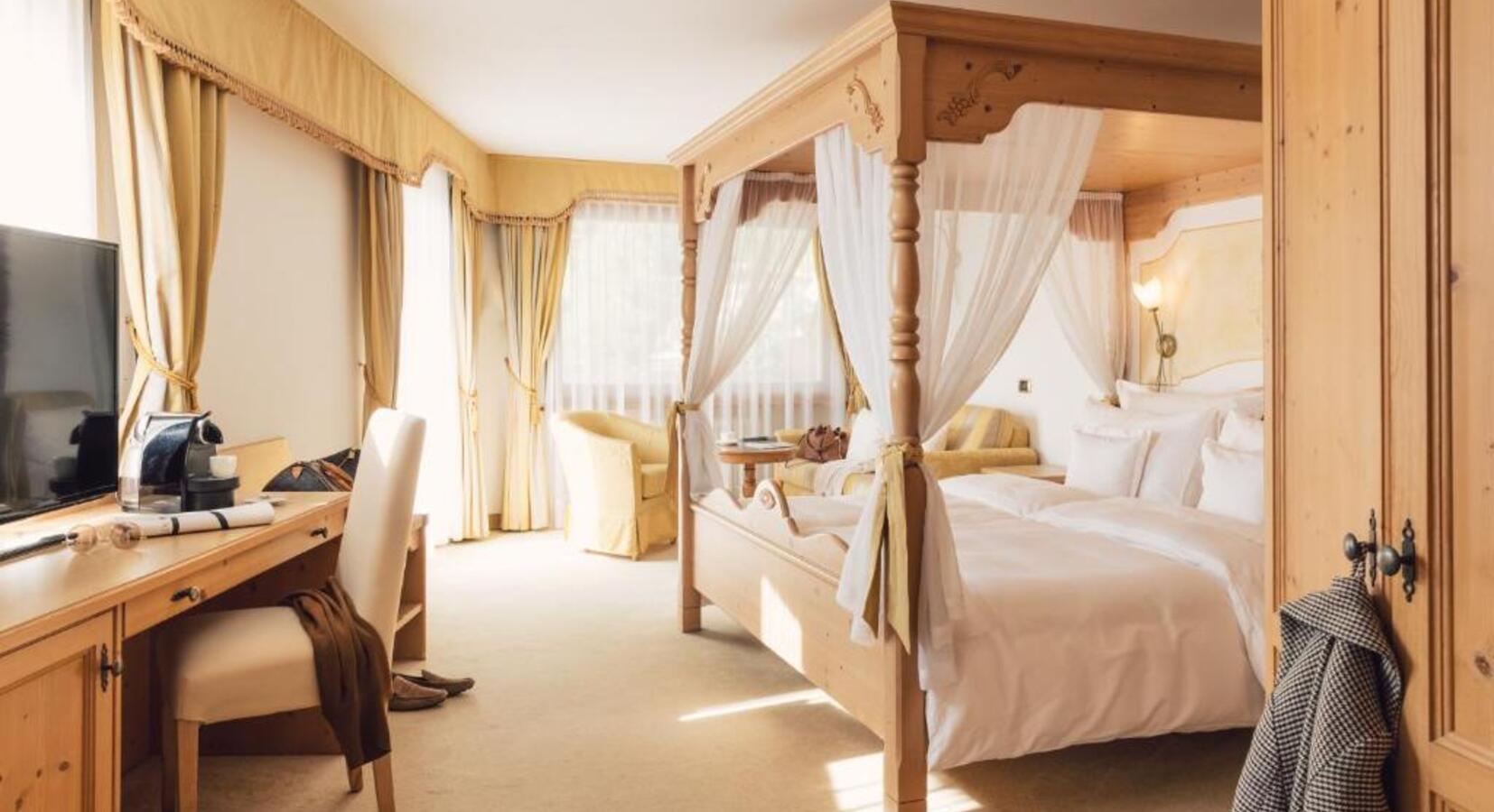 “Ein Wellness-Refugium im Südtiroler Ahrntal. Die Einrichtung ist eine Mischung aus rustikalem Charme und Eleganz, mit handgefertigten Holzmöbeln und gemütlichen Kaminzimmern. Die Gäste können sich im Spa mit beheizten Pools, Saunen und Panorama-Whirlpool entspannen oder sich von der regionalen Gourmetküche verwöhnen lassen. Glückseligkeit.”