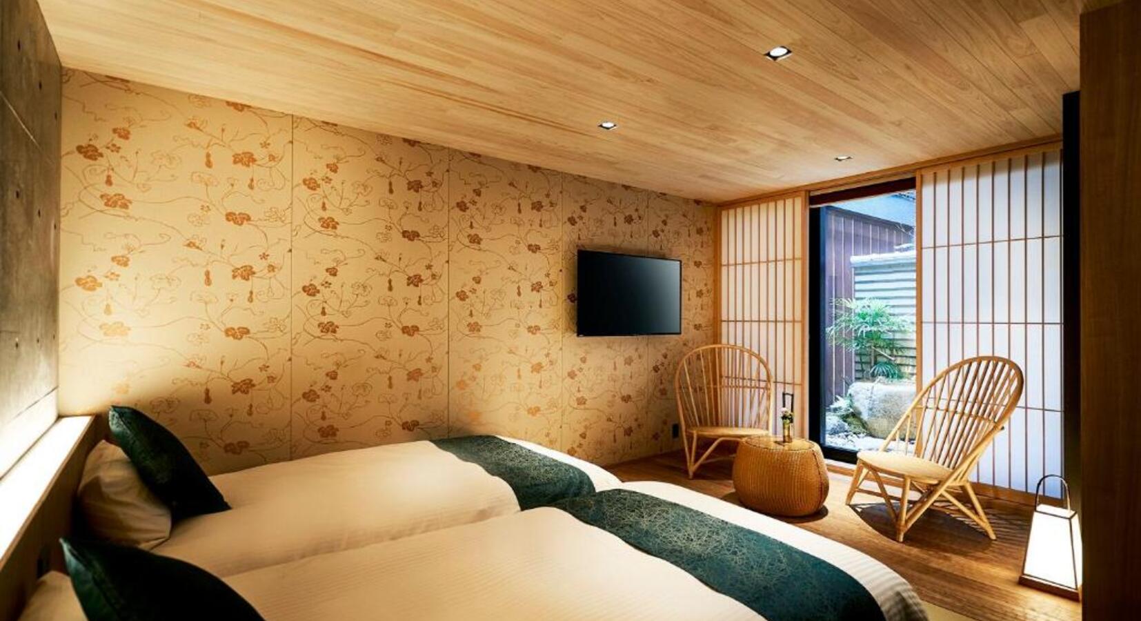 Das Sum-Dreibettzimmer hat Zugang zu einer Gartenterrasse; das japanische Zweibettzimmer B hat einen BalkonKein Restaurant
