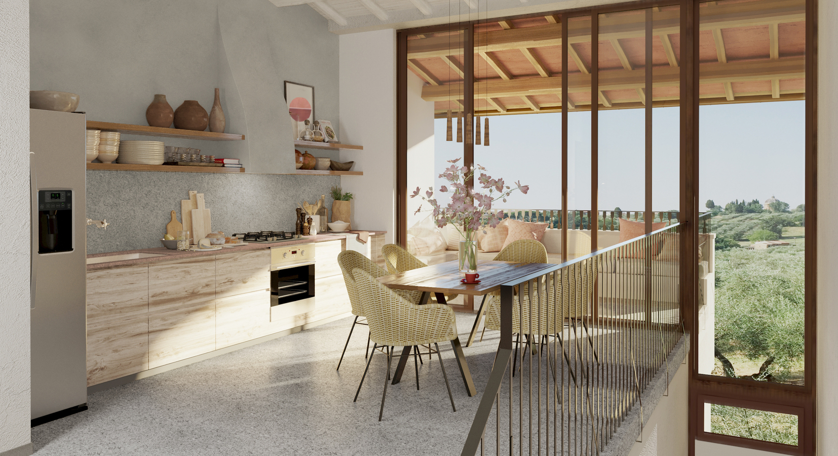 Each villa features split level living spaces with luxury en-suite bedrooms and an open-plan living area that includes a bespoke fully-equipped kitchen overlooking the stunning Tuscan skyline dotted with Cyprus trees. The outdoor space at each villa includes a private terrace or garden planted with Mediterranean aromatic herbs. Villa suites are rented on a minimum 3-night stay basis, including breakfast, daily maid service and in-room smart device pre-programmed with recommendations.
