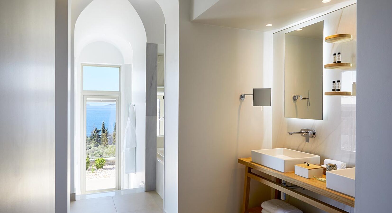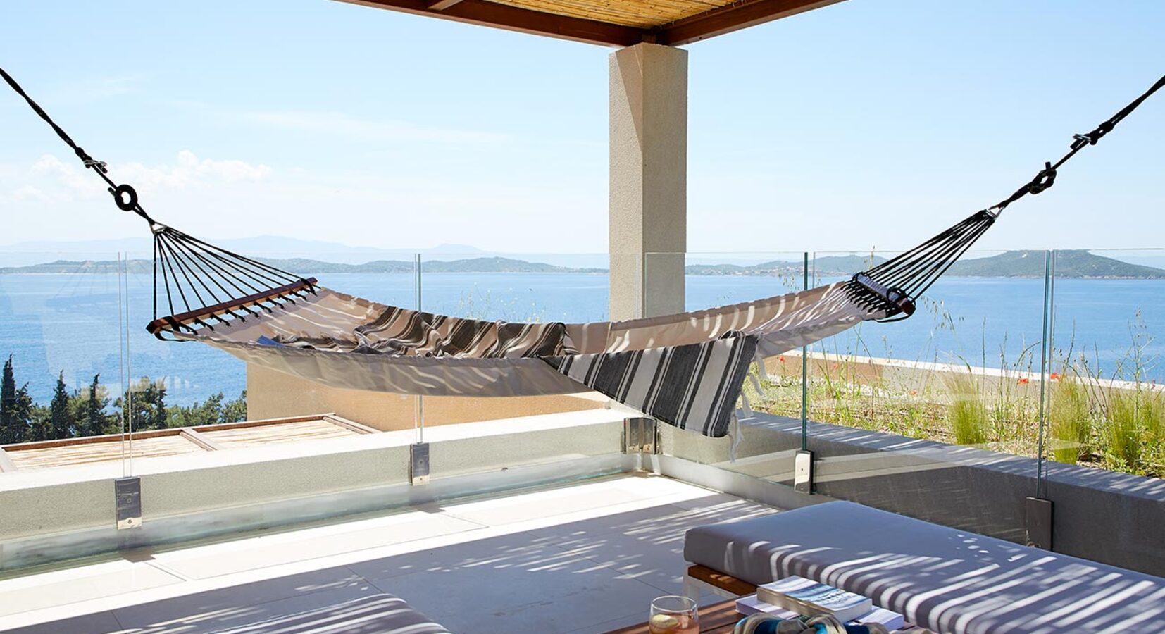Set on a verdant hillside overlooking the Aegean Sea in Halkidiki, this luxury resort offers a stylish hideaway a stone's throw from the coast. With a range of villas available, from open-plan studios to two-bedroom family complexes, there is something for everyone at this contemporary Greek bolt-hole. Designed by architects Styliandis, the low, cube-shaped villas harmonise with the beautiful natural setting. Terraces, living roofs and the interior design palette all blur the line between inside and outside space. There are plenty of pleasing stylistic touches, like the vaulted arch corridors reminiscent of classic Greek architecture. While each villa has a plunge pool, the resort also offers a public pool with great views, plus an indoor pool in the spa. The hotel spa draws on the local tradition with mud baths and a hammam; have a look at the children's spa menu for a treat for the kids. Families are well-catered to here, with a kid's club available at sister resort Eagles Palace and tennis courts which can be hired for games or lessons. For food and drink, head to hotel restaurant Lofos. Perched above the villas, it boasts excellent sea views and offers a tasting menu with innovative takes on local Greek cuisine. Retreat even further up to the Cabin Bar for cocktails at sunset, with panoramic vistas across the gulf. Set apart from the other hotels on the coast, this resort offers an exclusive hideaway holiday with excellent facilities.