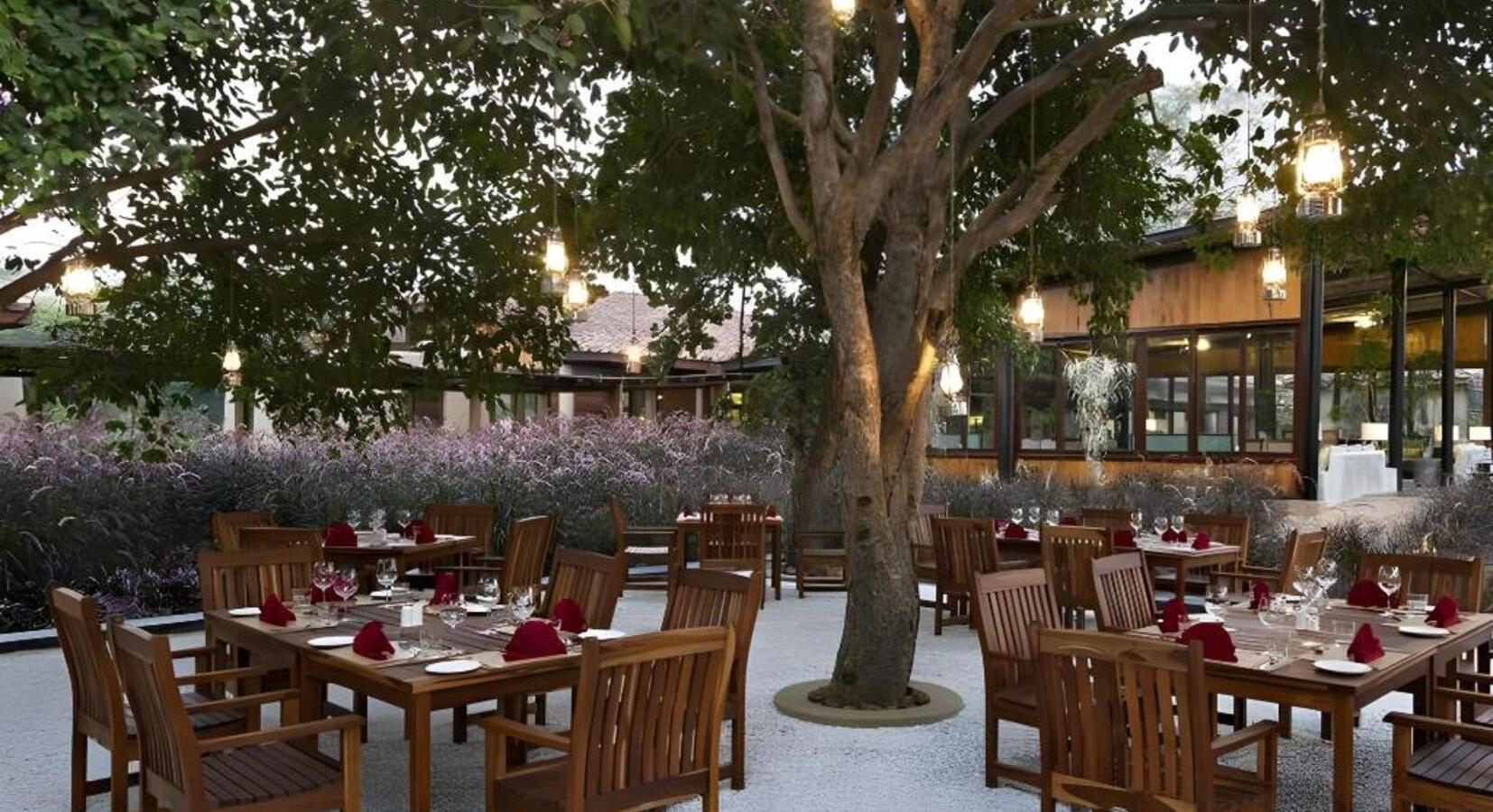 Under The Jamun Tree bietet indische Grillgerichte auf der Terrasse an, außerdem gibt es ein Café und ein europäisches Restaurant.Heilbad