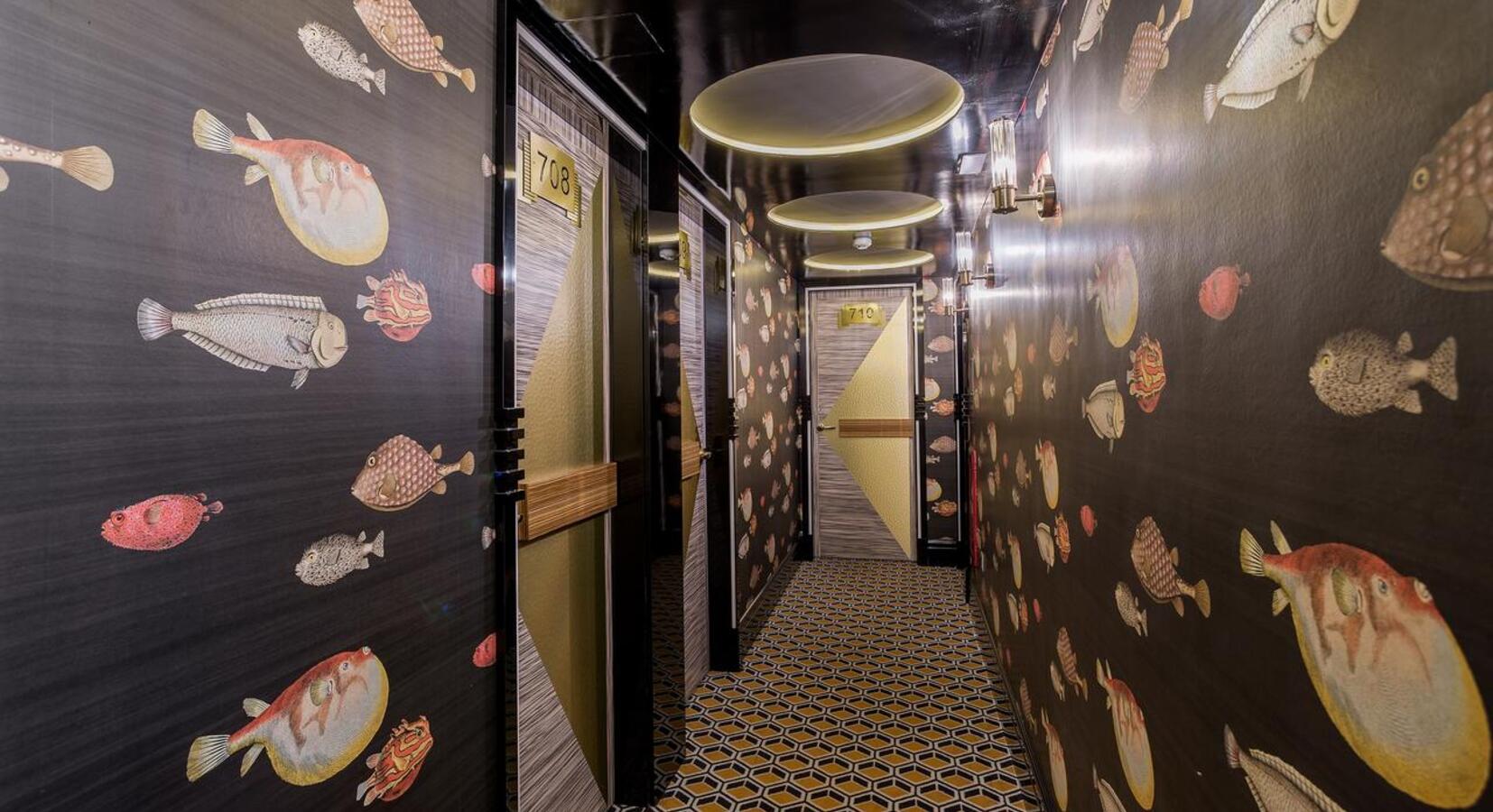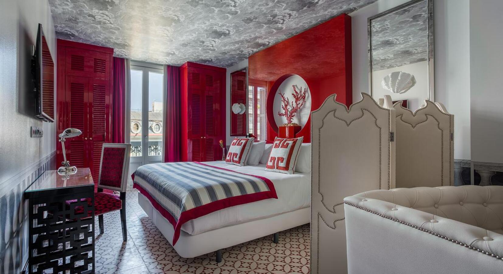 Decorated by the Spanish interior designer Lorenzo Castillo, some of the 81 rooms have mustard curtains, gold-framed mirrors and abstract art prints