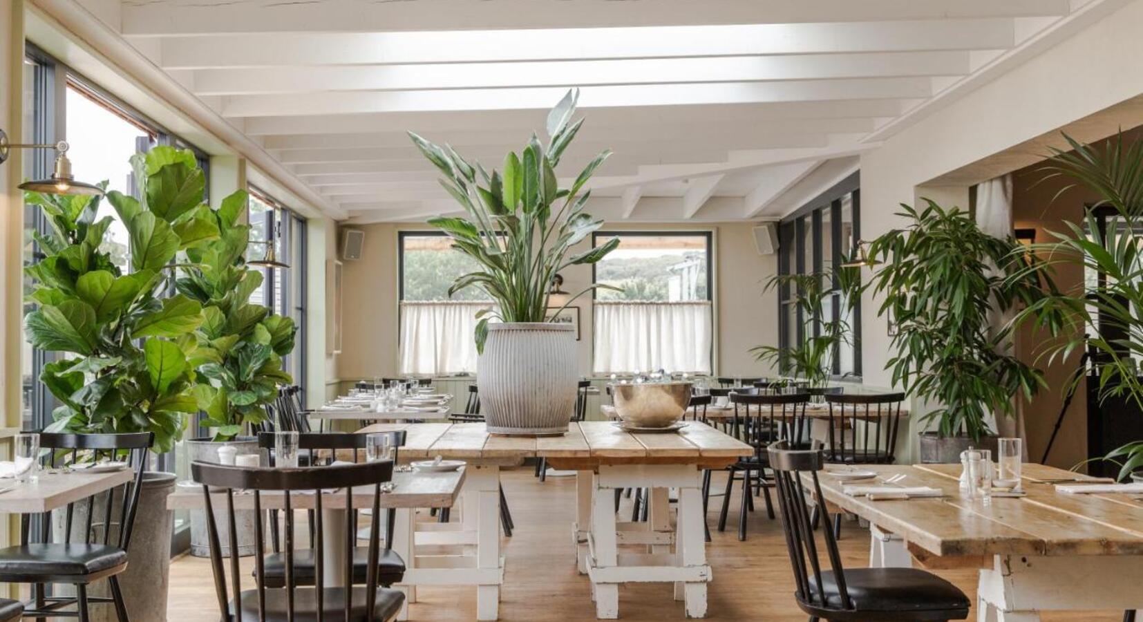 “1960s motel reborn as stylish New England beach hotel with good cafe and bistro dining, on Camber Beach. Driftwood style, retro detailing and a magnificent sandy beach.”