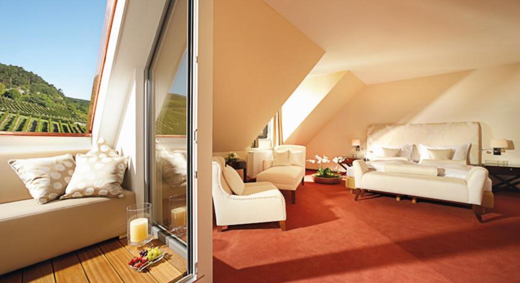 “A luxury contemporary hotel situated within one of Austria's finest wine regions. The spacious rooms boast large glass doors leading onto private terraces, with stunning views. Indulgent breakfasts are served in the pretty garden. With numerous outdoor pursuits to be enjoyed in the area. Bliss.”