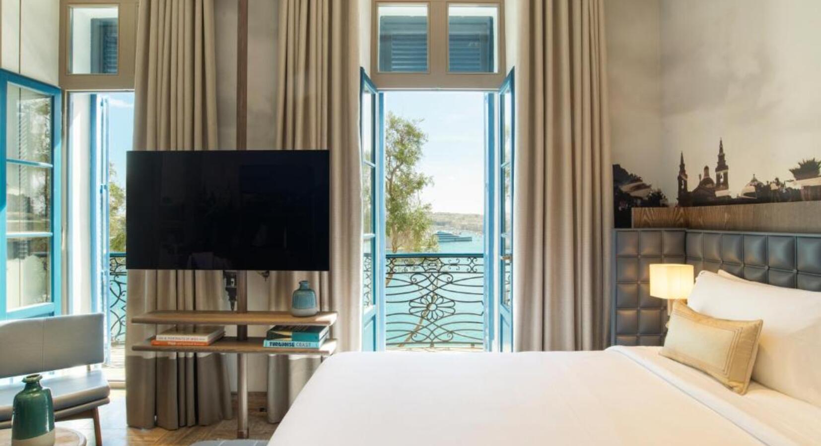 Facing the Grand Harbour and the golden-stoned Three Cities that stretch just beyond it, Iniala’s panorama is unmatched by any other hotel in Valletta, Malta’s tiny capital. The city’s miniscule footprint means all of its attractions are moments away, from the staggering grandeur of the gilded Saint John’s Co-Cathedral to its imposing National Library and the hodgepodge of cute little bars and restaurants that cascade down its tiered pedestrianised side streets and stretch across its plazas. Their protected status meant few structural changes could be made to the buildings that comprise Iniala; as a result, each of the hotel’s 23 bedrooms and suites differs to such a degree that guests can choose from 16 different room categories.