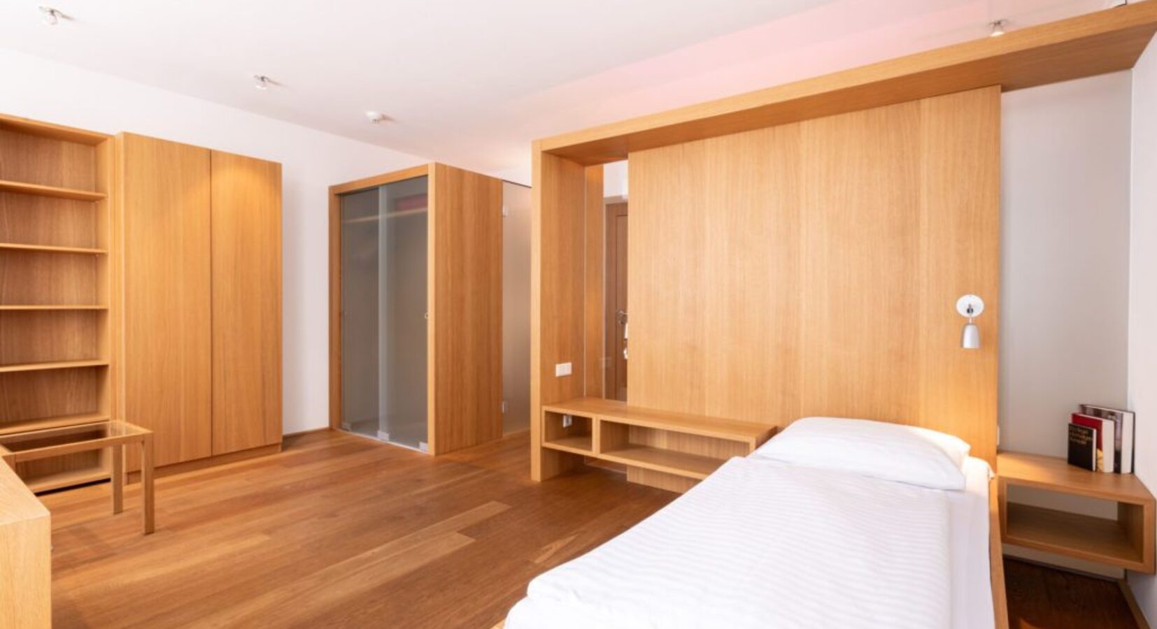Das Haus St. Benedikt beherbergt in erster Linie junge Novizen, die sich in der Ausbildung zum Benediktinermönch befinden. Da es an neuen Lehrlingen mangelt, haben sie einige der Zimmer für Leute wie dich und mich umgebaut. Es herrscht eine religiöse Atmosphäre, aber sie ist durchweg wohlwollend und einladend. Die Zimmer sind groß, minimalistisch, ein wenig asketisch, aber mit allem modernen Komfort (einschließlich WiFi) ausgestattet und sehr sauber. Das Frühstück ist Selbstbedienung und wird gemeinsam mit den Mönchen eingenommen, die ein fröhlicher und freundlicher Haufen sind, der immer bereit ist zu helfen. Bleiben Sie hier, eine Oase der Ruhe, aber nur zwei Minuten vom Trubel der Salzburger Touristenattraktionen entfernt.