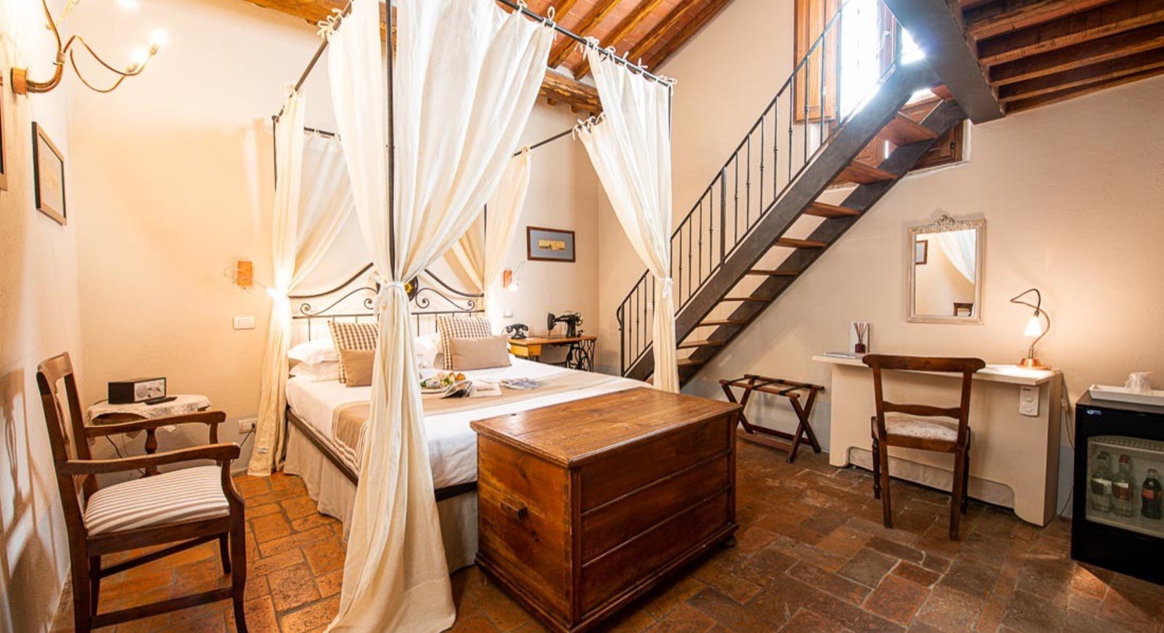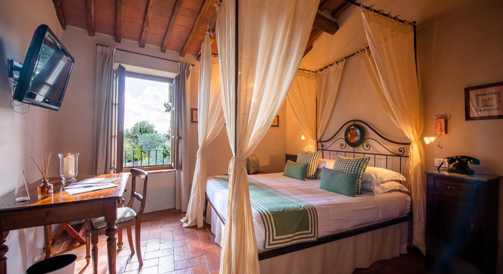 Occupying a 15th-century mansion in the lovely old town of San Quirico d’Orcia, south of Siena, the Palazzo del Capitano has emerged looking better than ever from a recent renovation. It offers 22 pretty rooms, handsomely furnished in Tuscan tradition, a comfortable sitting room/bar in the former stables with a fine vaulted roof and open fire, and an excellent restaurant. In warm weather, meals are served in the lovely shady garden.