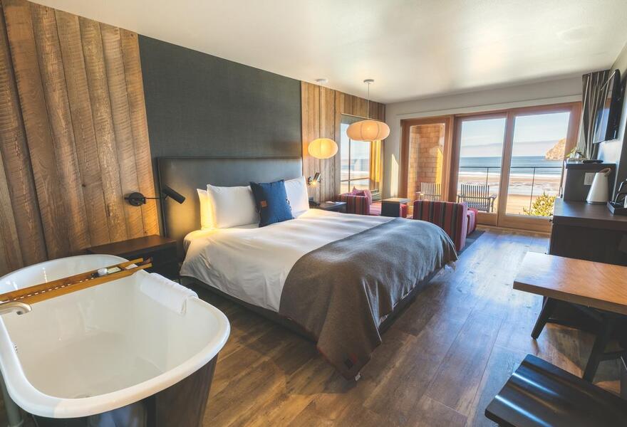 • Surfsand Resort is a family-friendly, tranquil resort on the impressive Cannon Beach. Interiors are classic, with a beachy vibe. There's an on-site restaurant serving American classics prepared with care, or you can kick back with a beach BBQ. They positively welcome children and have a range of activities including campfire sing-songs, beach balls & games, guided tidepool walks plus kids' robes and turndown service.