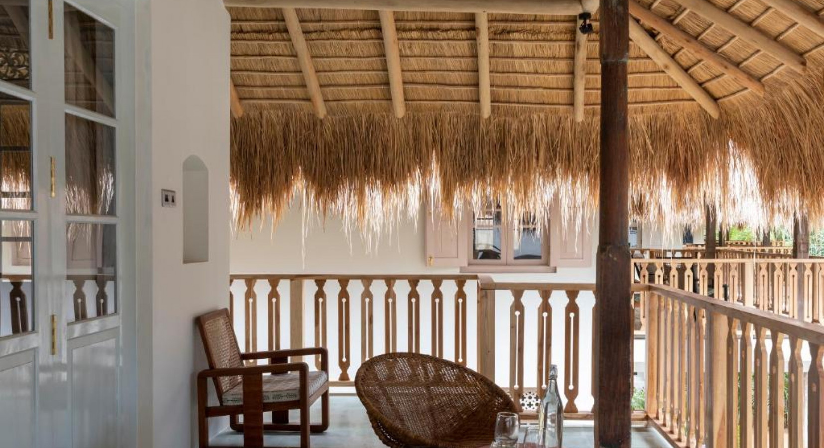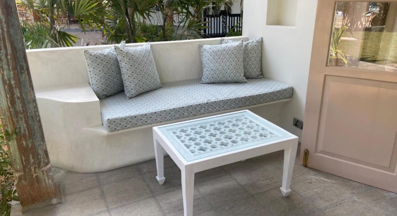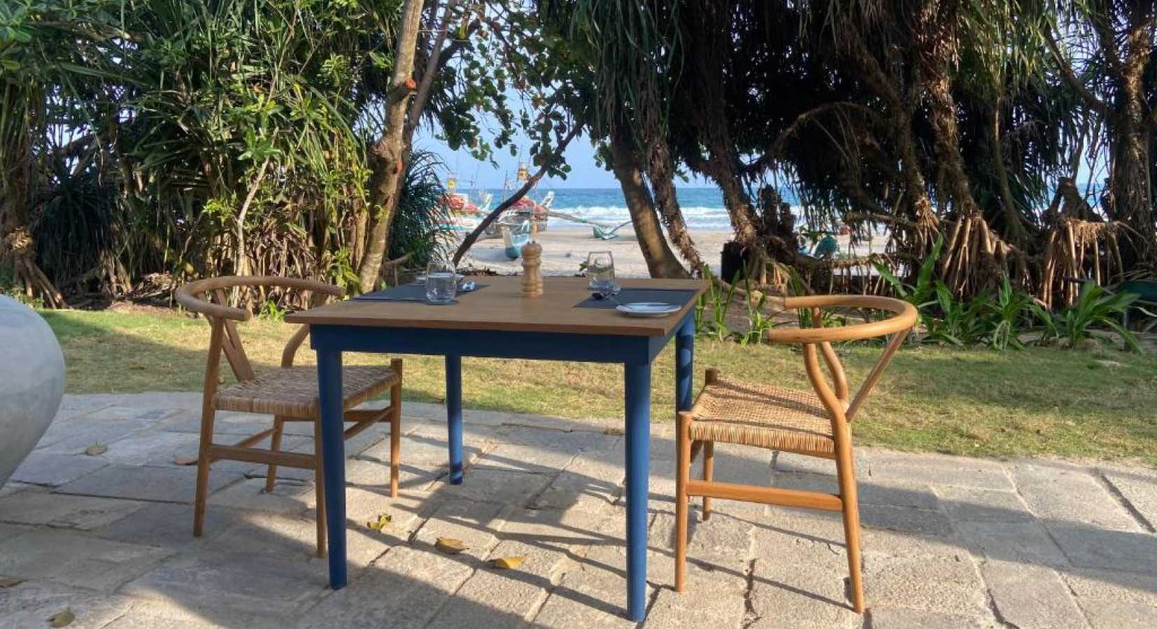 Peeking at the Indian Ocean from behind lush vegetation, Halcyon's lovely iluk roofs hide ten unique guestrooms. Dusky pink or blue-painted antique doors reveal big cosy beds topped with handwoven quilts, bright armchairs form inviting reading nooks and floors feature bespoke tiles inspired by the seaside. Created in collaboration with Sri Lanka-based British designer Lindsay Taylor, the eight doubles and two family suites are nothing short of fabulous.