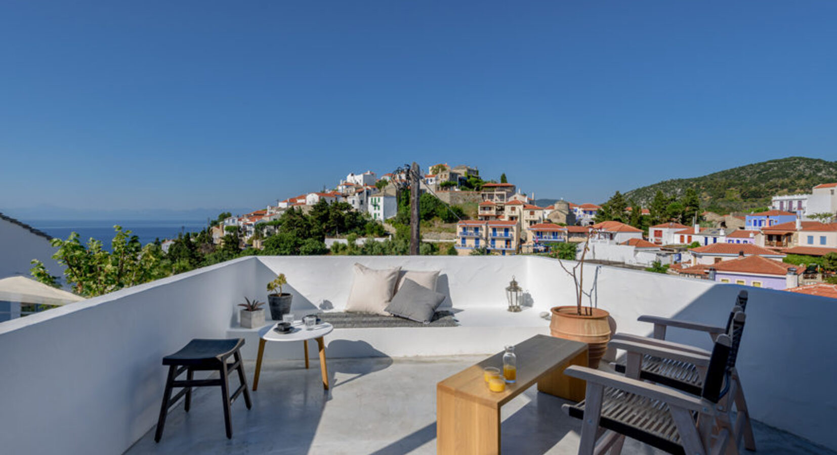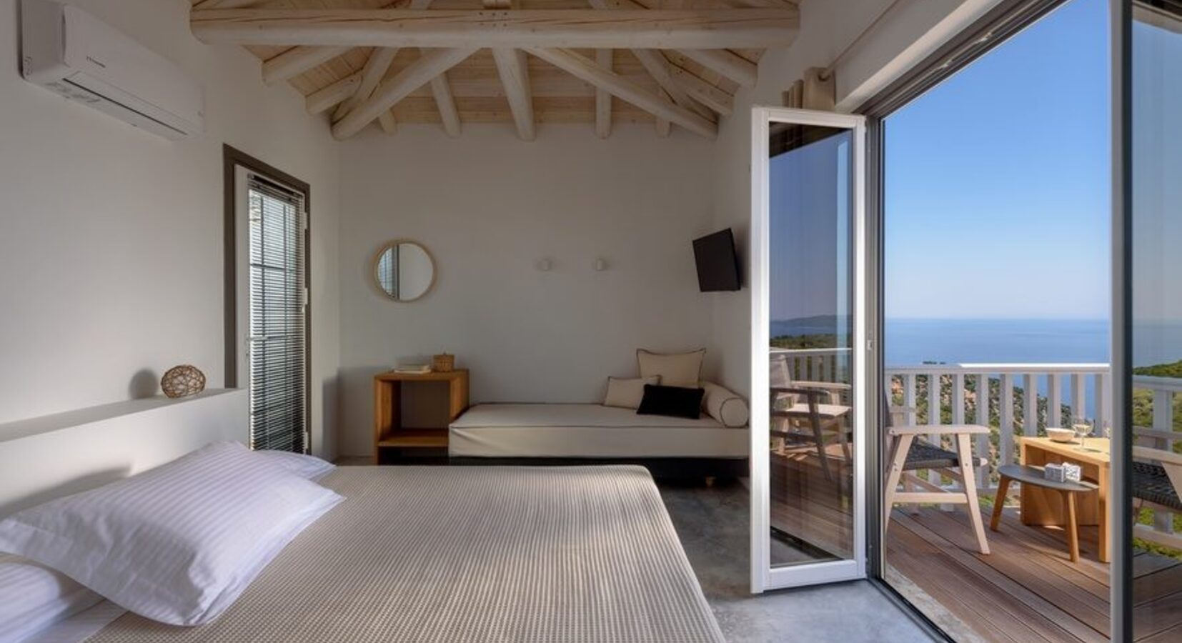 Sur une île éloignée au milieu de la mer Égée, au milieu de falaises d'un blanc immaculé, de forêts de pins, de vignobles et d'oliveraies qui se fondent dans la mer, les chambres Armonia ont beaucoup à offrir si vous cherchez à vous retirer de la routine de la vie quotidienne. Avec des chambres claires et aérées à la décoration minimaliste, des piscines d'hydromassage, des balcons privés et des vues panoramiques sur l'île, il est facile de se perdre dans la grâce tranquille de votre environnement. Les chambres sont climatisées et équipées d'ustensiles de cuisine, de télévisions intelligentes et sont nettoyées tous les jours par une femme de chambre. Savourez un verre de jus d'orange fraîchement pressé au café de l'hôtel tout en nourrissant votre âme sur la véranda, en contemplant le point où la mer et le ciel ne font qu'un. Faites une excursion en bateau jusqu'à l'île inhabitée de Yioura, où le cyclope d'Homère - d'après la légende - couvait autrefois. La ville portuaire de Patitiri a une vie nocturne animée, avec des restaurants, des bars et des clubs, et toute une série de cuisines locales, dont le Kakania (soupe de poisson) et le Fouskakia (beignets traditionnels).