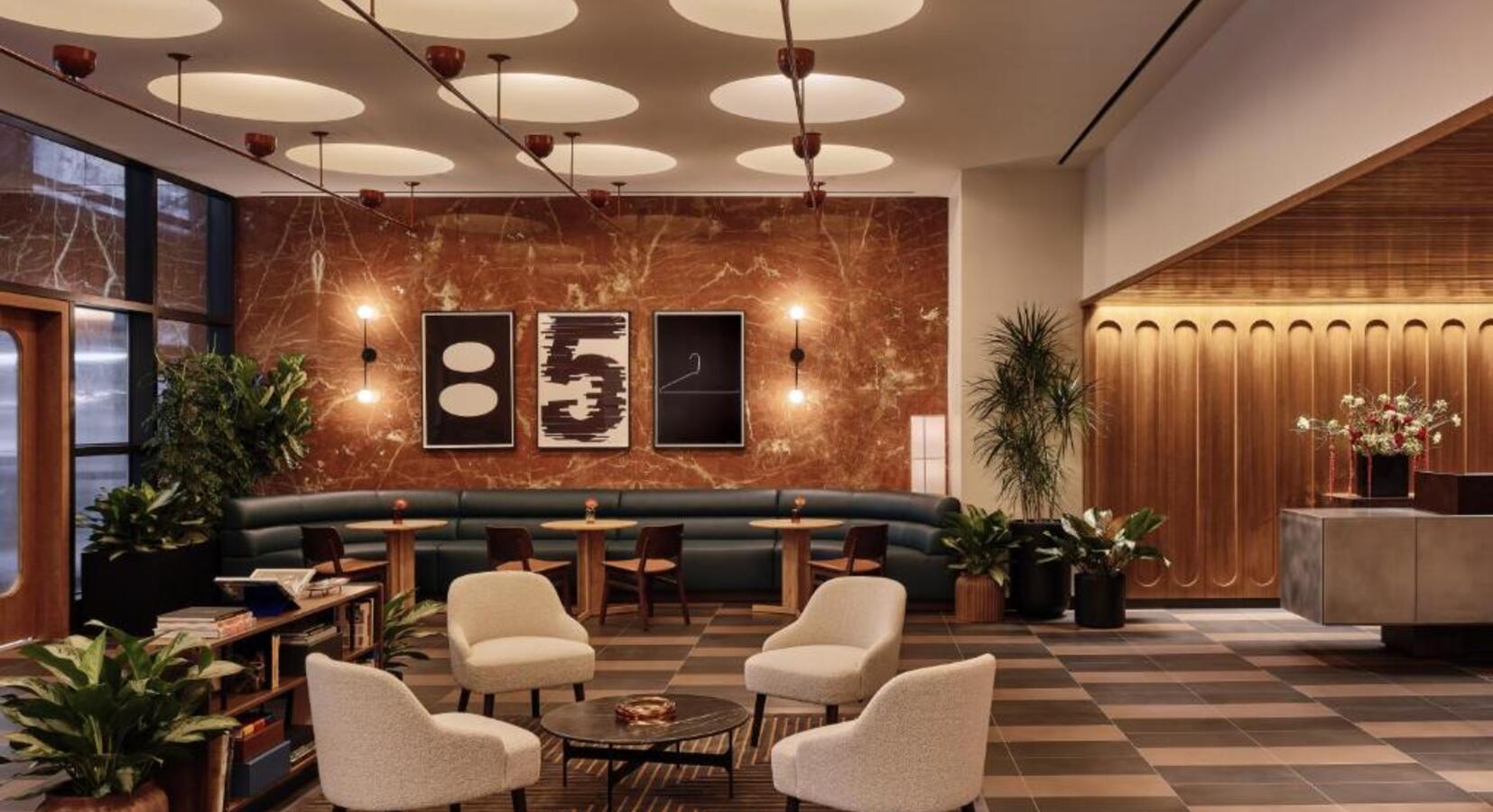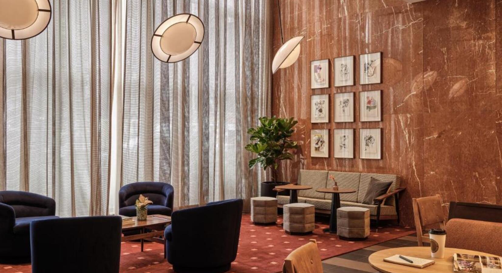 Officially opening its doors today, this palatial hotel has been expertly designed to showcase the rich heritage of the surrounding neighborhood, with Hell's Kitchen design firm Goodrich working to craft a lobby and public spaces that encourage seamless integration of both residents and guests throughout the day.