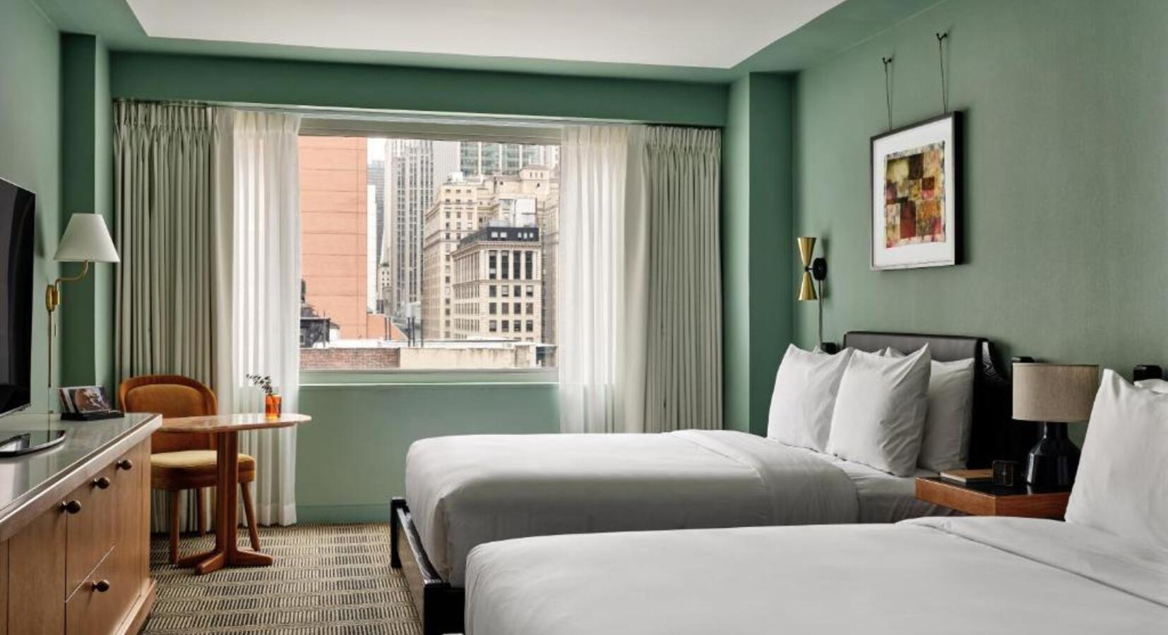 Juste à l'ouest de Broadway, Romer est un havre de paix bienvenu face au chaos de Times Square. Conçu par Islyn Studio, dirigé par des femmes, les chambres d'angle king de 33 mètres carrés donnent l'impression de pénétrer dans la demeure d'une légende locale : canapés en velours, mobilier sur mesure, œuvres d'art par les résidents du quartier et, très pratique, un défroisseur. Le Hell's Kitchen Neighborhood Café propose des plats et du café toute la journée, se transformant en un lieu décontracté pour la soirée. Le Study offre un espace de co-working éclairé par une cheminée, avec un Wi-Fi performant, des bières locales et du vin.