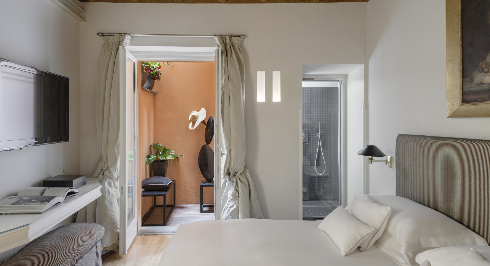 Crossing Condotti is a quiet haven located in Rome's bustling but still villagey fashion district. The nine-room hotel has the simplicity of a guesthouse but the panache of a luxury hotel. The décor is a tasteful mix of antique and contemporary, with fine bed linens and textiles creating an aura of discreet opulence.