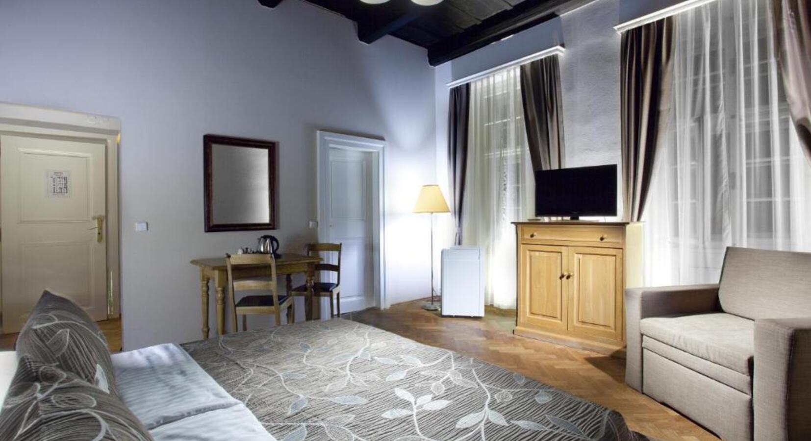 This historic inn offers 12 rooms in one venue and 16 in another annex over the road. Both are in the shadow of Charles Bridge's Gothic tower on the Mala Strana side, and are steeped in tradition with refined, wood-heavy interiors and fine fabrics and furnishings. There's a fine dining restaurant and a creperie too.