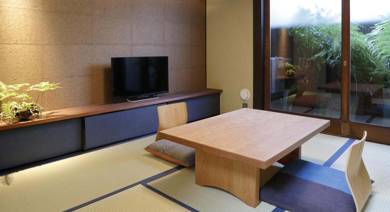 • Zeitgenössisches Mobiliar und Kunstwerke teilen sich den Raum mit traditionelleren Tatamizimmern und Shoji-Schirmen