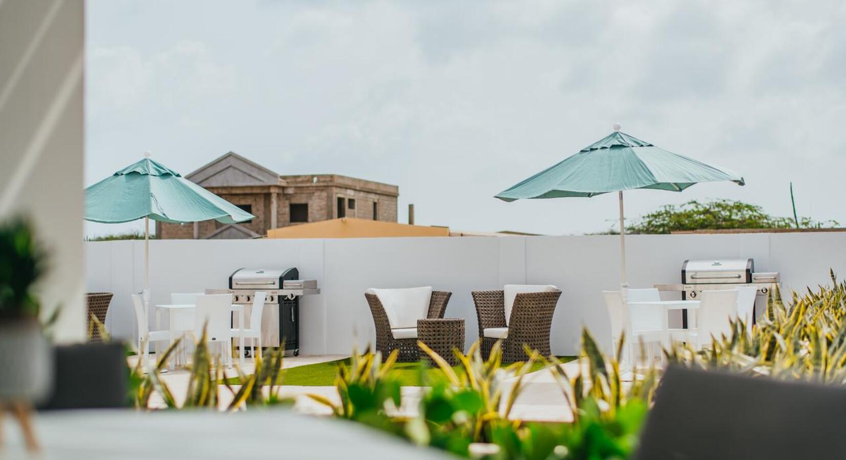 Jede Einheit verfügt über eine eigene Terrasse mit Grill, Tischen und Stühlen im Freien. Die Anlage teilt einen schönen GartenHaustierfreundlich
