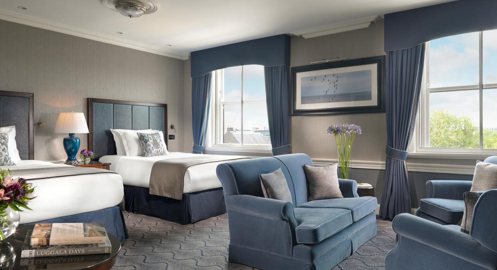 With its iconic red brick facade overlooking Dublin’s St. Stephens Green in the heart of city, The Shelbourne is something of a Dublin institution. Magnificently restored, the guestrooms are traditional in style while also luxurious and elegant, with high ceilings, plush carpeting, marble bathrooms and decadent linens. The bedrooms to the front of the building afford expansive views over St. Stephens Green and are worth paying a little extra for. Guests are spoiled for choice with an abundance of food and beverage options within the hallowed halls and Sunday lunch in The Saddle Room is a timeless treat. The Shelbourne also boasts an opulent health club, spa and salon with an indoor swimming pool, thermal suites, a state-of-the-art fitness centre and a dance studio. A visit to the neighbouring Little Museum of Dublin is also highly recommended for those with even a passing interest in Irish history.
