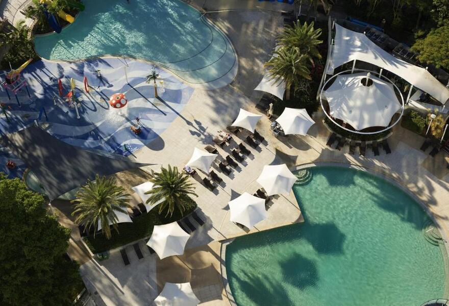 Close to Surfers Paradise Beach, this high-rise resort has spacious double rooms & two-bedroom suites, a soothing spa, gym and tennis courts. There's a superb lagoon pool area with slides for kids, whilst the 27-hole golf course is superb, with three nine-hole options for keen golfers.
