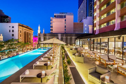A luxury hotel set in the hip Fortitude Valley precinct. Spacious rooms feature indulgent bathrooms complete with rain showers, superb city views and added quirks such as a complete cocktail making set. A french cafe serves up barista-crafted coffee and there's a roof terrace pool. Very chic.