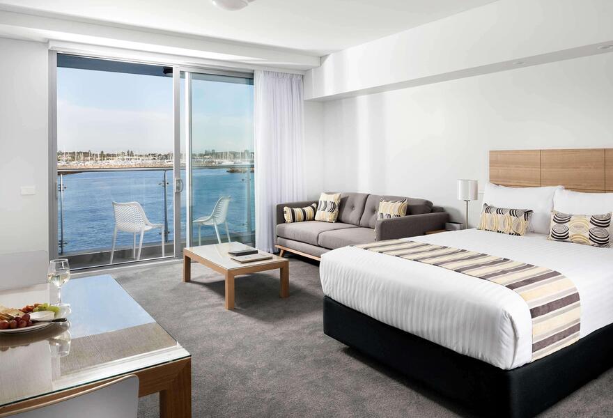 Eine Auswahl stilvoller Studios und Apartments mit ein oder zwei Schlafzimmern erwartet Sie in Küstennähe im lebhaften Fremantle. Die luftigen Räume überzeugen mit einer sauberen, zeitgemäßen Innenausstattung, modernen Küchen, Balkonen und allen Annehmlichkeiten. Diese schicke urbane Unterkunft bietet zudem Konferenzeinrichtungen, ein Fitnessstudio und einen bequemen Zugang zu den besten Plätzen der Stadt. Wunderbar.