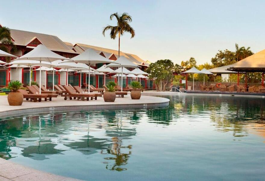 Dies ist das ultimative Entspannungsresort, nur wenige Gehminuten vom kultigen Cable Beach entfernt. Die eleganten, modernen Zimmer verfügen über herrliche Marmorbäder, private Balkone und Nespresso-Maschinen als Standard. Außenpool mit Poolbar und Restaurant mit australischer Küche.