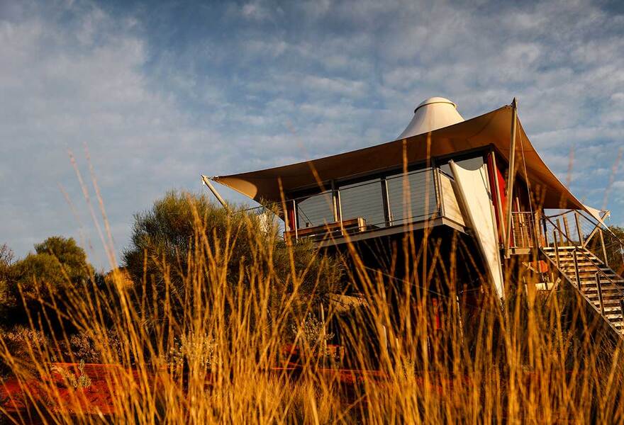 • Longitude 131°, tantalisingly close to Uluru, is amongst Australia's most indulgent tented camps. The 15 tents and pavilions feel more like sumptuous suites, with panoramic views, a serene spa, small group excursions to Uluru and Kata Tjuta, and gourmet dining under the stars. An exceptional honeymoon haven.