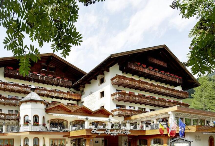 A luxury hotel and spa in a prime position for the ski lifts with traditional alpine features: wood panelled walls and pine furniture, plus a fabulous three-floored spa connected by underground pass. Gourmet cuisine with regional specialities and a multitude of activities.