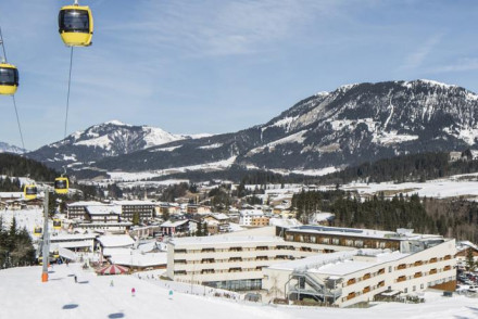 This luxurious hotel in the Tyrolean Alps features designer rooms and bathrooms in a contemporary style. There's an indoor pool and extensive spa and wellness facilities to unwind in after a long day skiing. Having a meal at the gourmet restaurant is a must - a stylish stay just outside town.