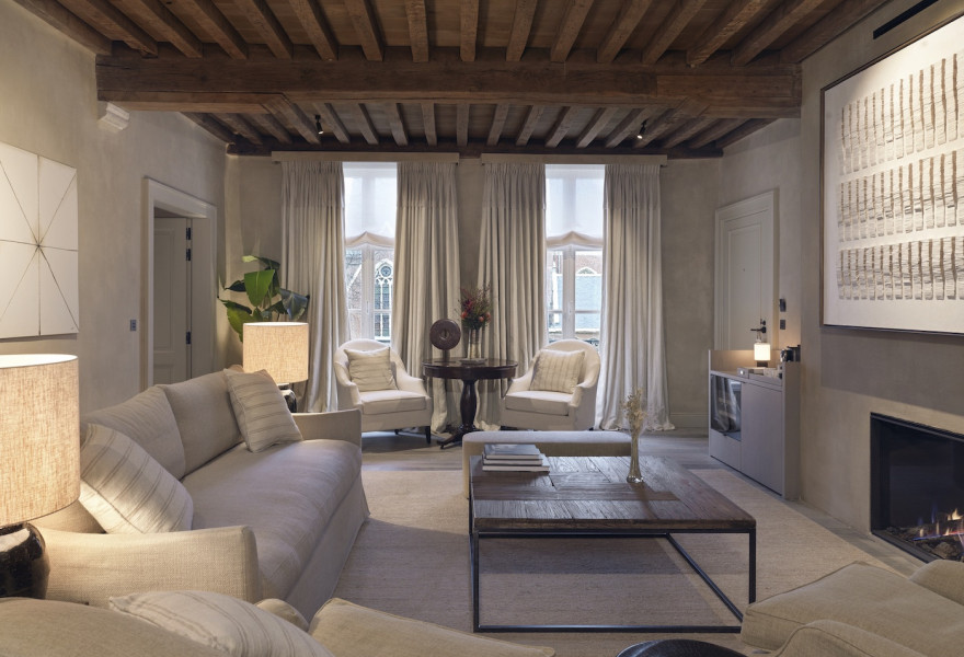 A stunning townhouse with classic interiors and sumptuous bedrooms. Suites and bedrooms blend classic elegance and contemporary elements. Chandeliers, parquet floors and fireplaces contrast sleek modern furnishings and modern art. A very stylish spot.