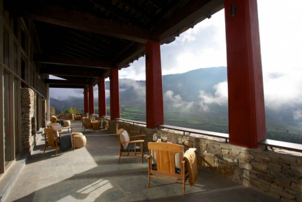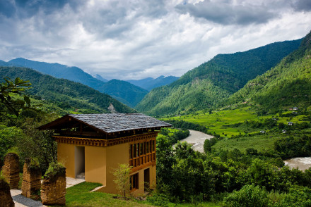 • Das Dhensa liegt im Herzen des Punakha-Tals und bietet von allen 24 Zimmern und Suiten aus einen Blick auf das Tal. Das Innere des Hotels ist schlicht und modern, mit viel hellem Holz und großen französischen Fenstern. Es gibt auch ein ausgezeichnetes Spa. Nur zehn Minuten Fußweg entfernt liegt ein traditionelles buddhistisches Kloster.