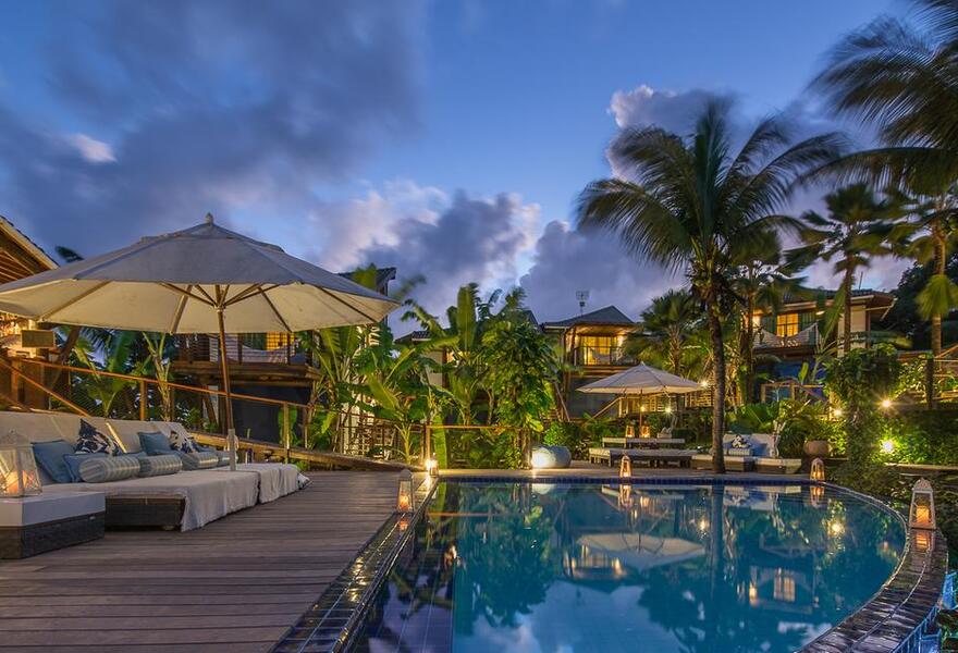A luxury beach resort on the island of Fernando de Noronha. Tree house style suites are rustic, romantic, and luxurious. Lovely pool and lounge area and fabulous local ingredients from the sea! White sand beaches, dolphins, turtles, and diving. The perfect spot for a honeymoon.