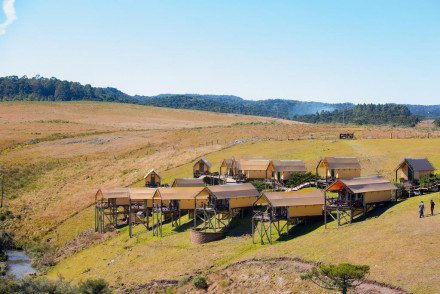 Cette propriété jouit d'une situation rurale isolée à Cambará do Sul. Elle comprend des huttes individuelles avec des meubles en bois et dispose d'un bain à remous et d'un sauna. Laissez vos soucis derrière vous dans ce refuge paisible et immergez-vous dans une beauté naturelle totale. Une expérience unique et revitalisante.