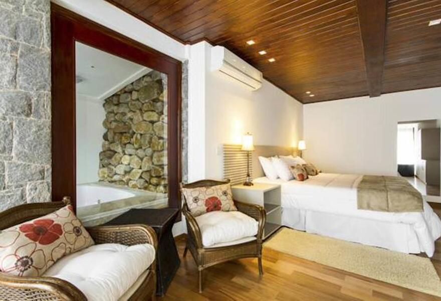 Dieses Hotel bietet luxuriöse, in sich geschlossene Villen und Suiten im brasilianischen Atlantikwald. Die Boutique-Villen sind mit Naturstein, Schiefer und freiliegendem Stahl ausgestattet, mit weichen Betten und gemütlichen Kaminen; wählen Sie eine Supreme-Villa für einen privaten Pool. Buchen Sie eine Behandlung im holistischen Spa - ein einzigartiger Rückzugsort in der Natur.