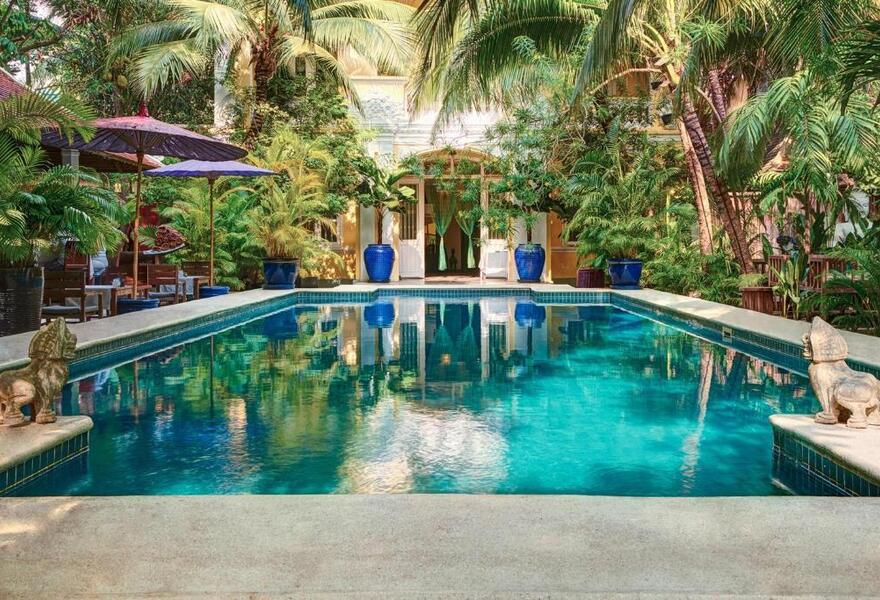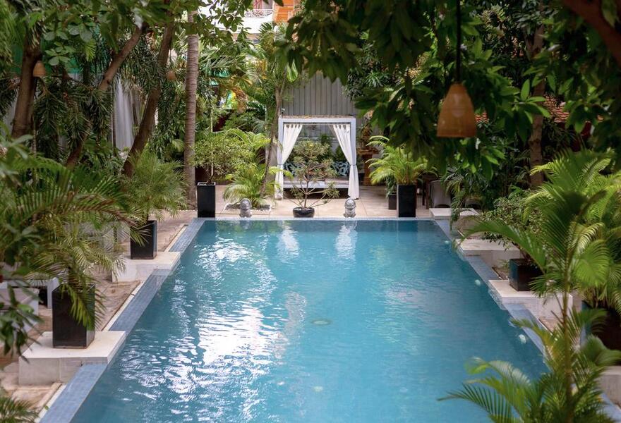 An iconic Cambodian boutique hotel, The Pavilion is housed in four lovingly restored colonial-era buildings. Expect wooden four-poster beds topped with crisp white linens, big windows & plunge pools in the best suites. A romantic gem just 100 metres from the Royal Palace.