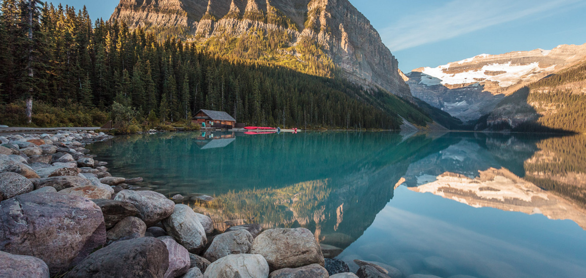 Ein gehobenes Resort, eingebettet in die kanadischen Rocky Mountains im Banff National Park. Die rustikalen Zimmer sind mit handgefertigten Holzmöbeln und Steinkaminen ausgestattet. Von den privaten Balkonen aus hat man einen herrlichen Blick auf den See und die umliegende Landschaft. Friedlich und heiter.
