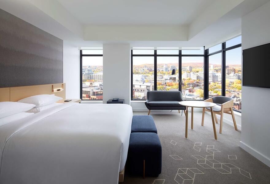 This chic hotel, situated steps from Union Station, combines modern comfort with timeless elegance. The sophisticated decor is complemented by plush amenities throughout. Guests can enjoy a variety of dining options, a rooftop bar, and a high end fitness centre. Great for both work and leisure.