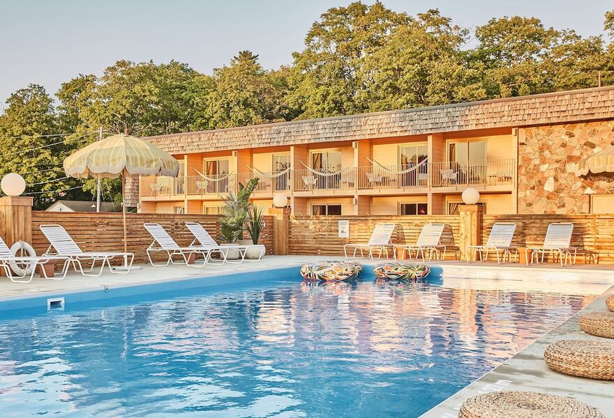 This laid-back motel in Sauble Beach is just a short stroll from the sand. The retro-inspired decor brings a breezy, coastal vibe with touches of 1970s California style. Enjoy fresh seafood at Heydays, relax by the seasonal pool, or unwind at the lively poolside bar. The ideal casual beach escape.