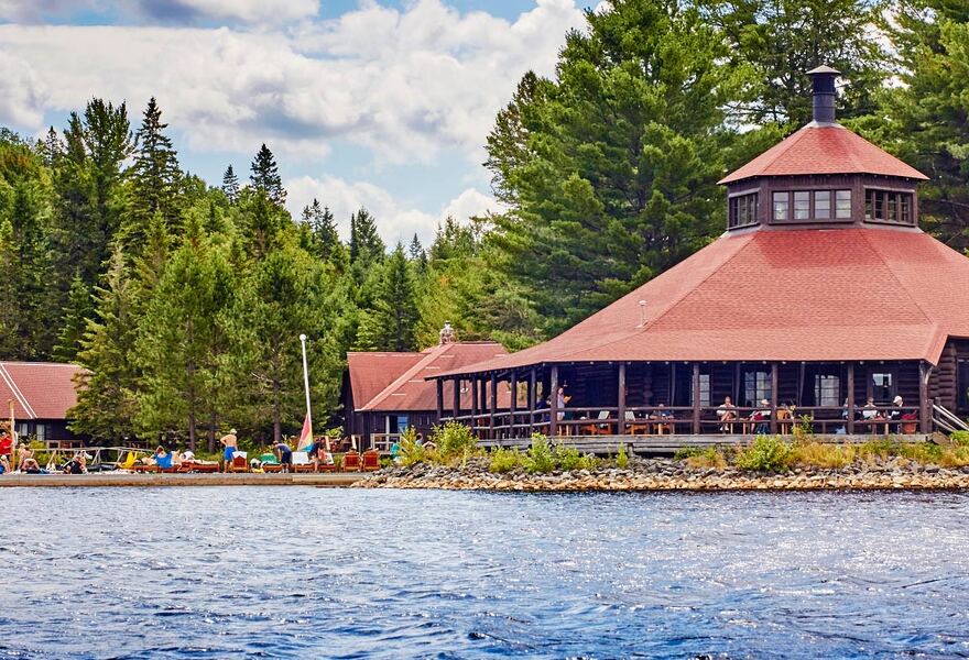 • With plenty of activities, Arowhon Pines is a rustic chic resort in the centre of Algonquin Park on the shores of Little Joe Lake. Cabins feature a range of hand-painted french style furnishings, fireplaces and private lakeside patios. All inclusive meals are served in a hand-hewn log dining room. A totally off-grid wilderness escape!