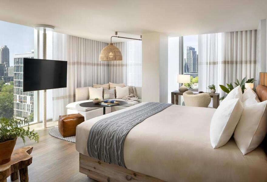 • 1 Hotel Toronto is an eco-luxury urban retreat with sunlit rooms featuring organic textures and spa-style bathrooms. Dine on farm-to-table fare, unwind at the rooftop pool, and enjoy Bamford’s holistic spa with organic treatments. Walkable to downtown hotspots, yet blissfully serene inside.