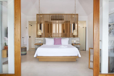 Auf Paare ausgerichtetes Strandresort nur für Erwachsene in einer geschützten Bucht. Jede der Suiten im Loft-Stil ist modern und minimalistisch eingerichtet und verfügt über ein Bad im Freien und einen privaten Pool; die besten bieten einen atemberaubenden Meerblick. Ein All-inclusive-Paket macht das Essen einfach und kostengünstig. Romantischer Rückzugsort am Strand.