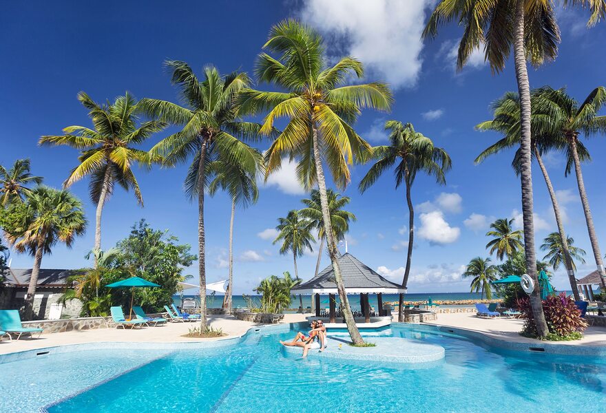 • Coco Palm has a laid-back, friendly feel, with pretty blue-and-white rooms and suites centred around the swimming pool in Rodney Bay. Expect a relaxing spa, two good Caribbean restaurants, and a sociable vibe. A great value choice for couples, friends or families.