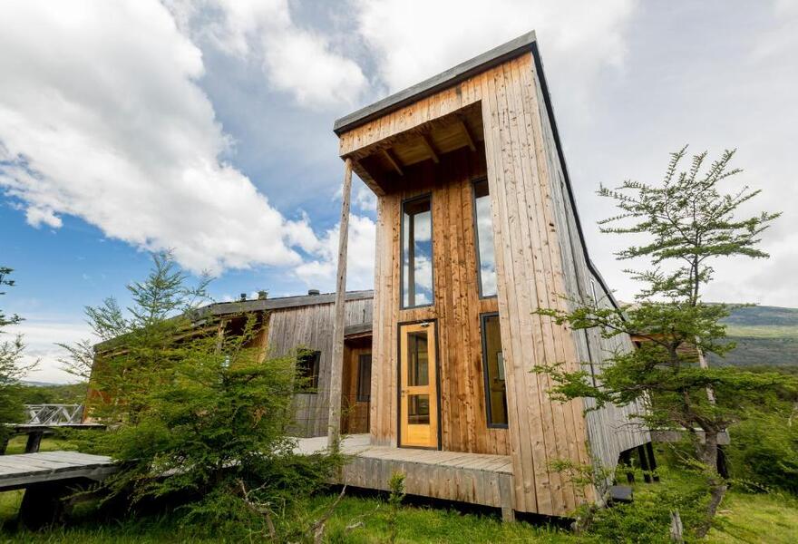 Diese umweltbewusste Lodge in Puerto Bertrand bietet einen ruhigen Rückzugsort in Patagonien. Mit ihrer hölzernen Innenausstattung und dem atemberaubenden Blick auf den türkisfarbenen Baker River und die hoch aufragenden Berge fügt sie sich nahtlos in die Landschaft ein. Genießen Sie Aktivitäten wie Rafting, Angeln und Wandern. Eine abenteuerliche Flucht.