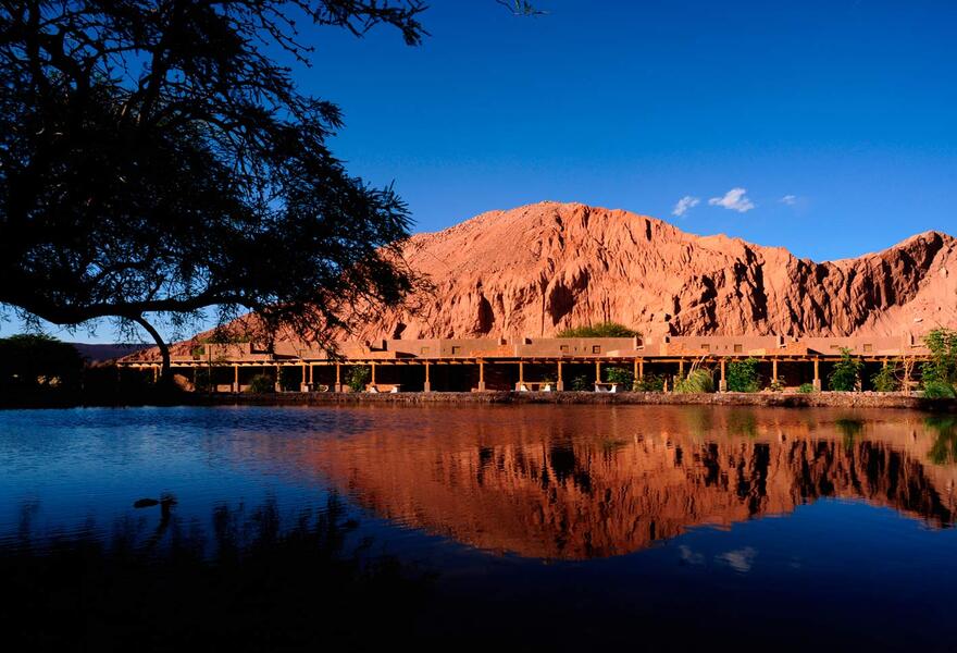 Cet hôtel contemporain se trouve dans le spectaculaire désert d'Atacama. Les chambres au style simple présentent beaucoup de verre et de bois sur fond blanc. Dégustez des plats régionaux, admirez les vues spectaculaires, détendez-vous dans le spa et embarquez pour l'une des nombreuses expéditions dans le désert. Un séjour vraiment unique.