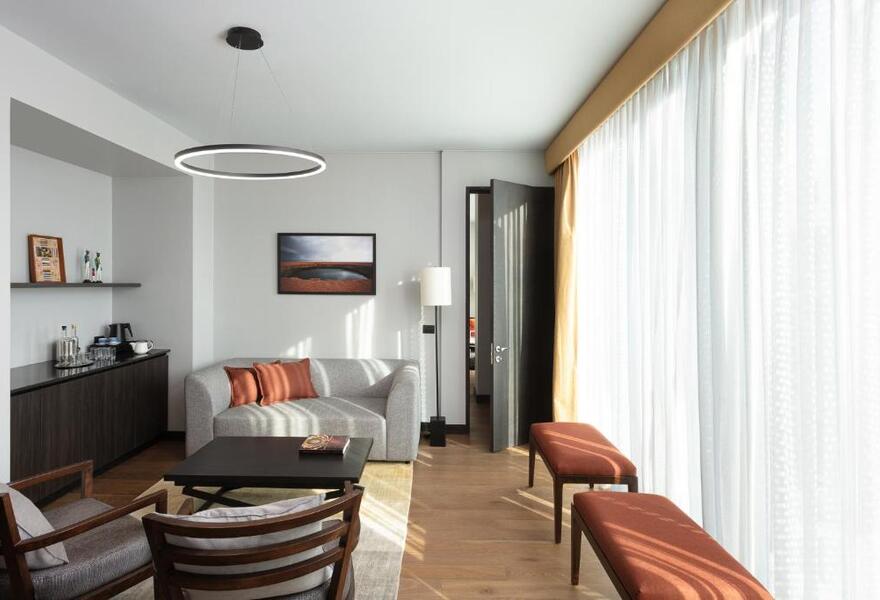 A stylish urban retreat in Santiago, offering sweeping views of the Andes. The decor blends modern elegance with natural touches, creating a serene atmosphere. Highlights include a lagoon-style pool, lush gardens, and exceptional dining from Nikkei to Italian cuisine. A true city escape.
