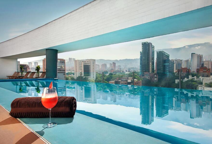 A luxury hotel in the heart of Medellin, offering a chic, contemporary design with sleek furnishings and vibrant touches. Expect a refined experience with an outdoor pool, spa services, and exceptional dining at El Bistro by Juanma. Perfect for those seeking a sensory escape in the city.
