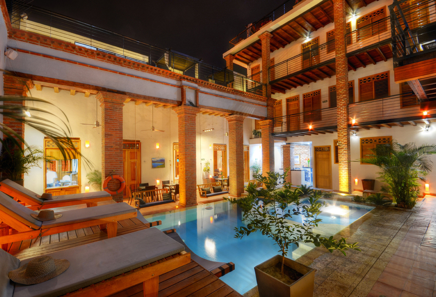 Dieses Luxushotel befindet sich im historischen Zentrum von Santa Marta, Kolumbien. Die Zimmer bieten eine Mischung aus klassischem und modernem Design mit hellen Fliesenböden und einzigartigen modernen Möbeln; buchen Sie eine Suite für ein separates Wohnzimmer. Entspannen Sie sich am Pool auf der Dachterrasse - ein schicker Ausflug in die Karibik.