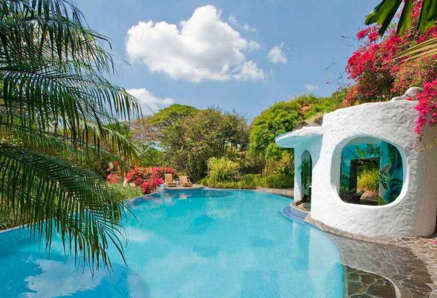 An elegant country property nestled in the wooded hills above San Jose. Eccentrically dressed rooms feature large frescoes, hot tub baths and parquet flooring. Spend days exploring the surrounding plantations by foot or horse and return for lavish Latin-fusion dinners and cocktails. Fabulous.