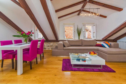 • The Stradun Apartments are a collection of light, airy, boutique-style apartments in the Old Town. They’ve been converted from a 17th century townhouse, but they’re very contemporary inside, beyond the beamed ceilings and the exposed stone walls. Each apartment sleeps up to four, and has everything you’d need to make a family comfortable. They’re also a good choice if you want to stay in town for a while.